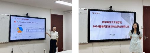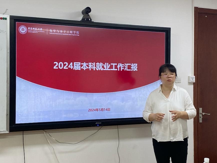 首先,学院本科生(非师范)毕业班辅导员史琳、本科生(师范)毕业班辅导员陆敏、闵行校区研究生毕业班辅导员冯琪、普陀校区研究生毕业班辅导员王梦雅分别结合学校学院对就业工作的部署安排,从当前就业率、毕业生“一生一策”就业进展汇报、就业困难生数据分析、进一步就业举措等方面出发,汇报了学院2024届毕业生情况和最新就业进展。