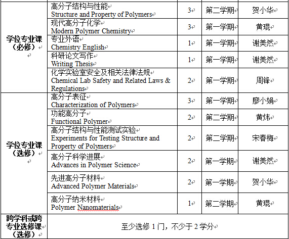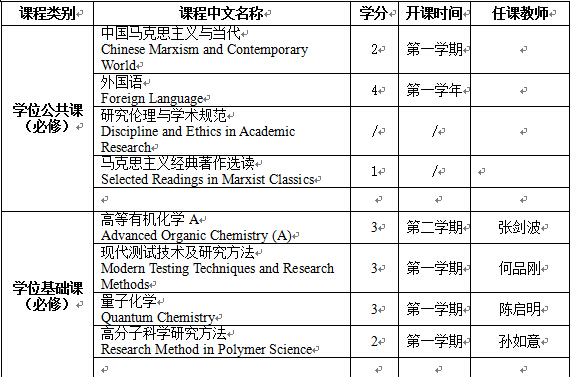 (二)在高分子学科上掌握坚实宽广的基础理论和系统深入的专门知识,同时要掌握一定的相关学科知识,具有独立从事科学研究工作的能力,在科学或专门技术上做出创造性的成果。