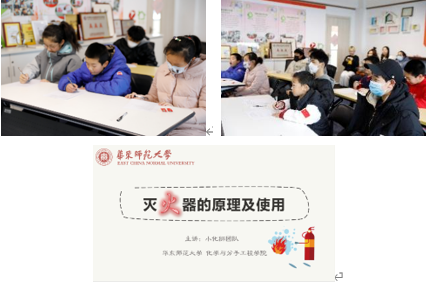 在2022年2月20日,华东师范大学化学与分子工程学院“小化狮”社会实践团队精心准备了一堂《灭火器的原理及使用》科普课程,课程于当天下午2点在上海市伟业路“和普公益”活动室展开。