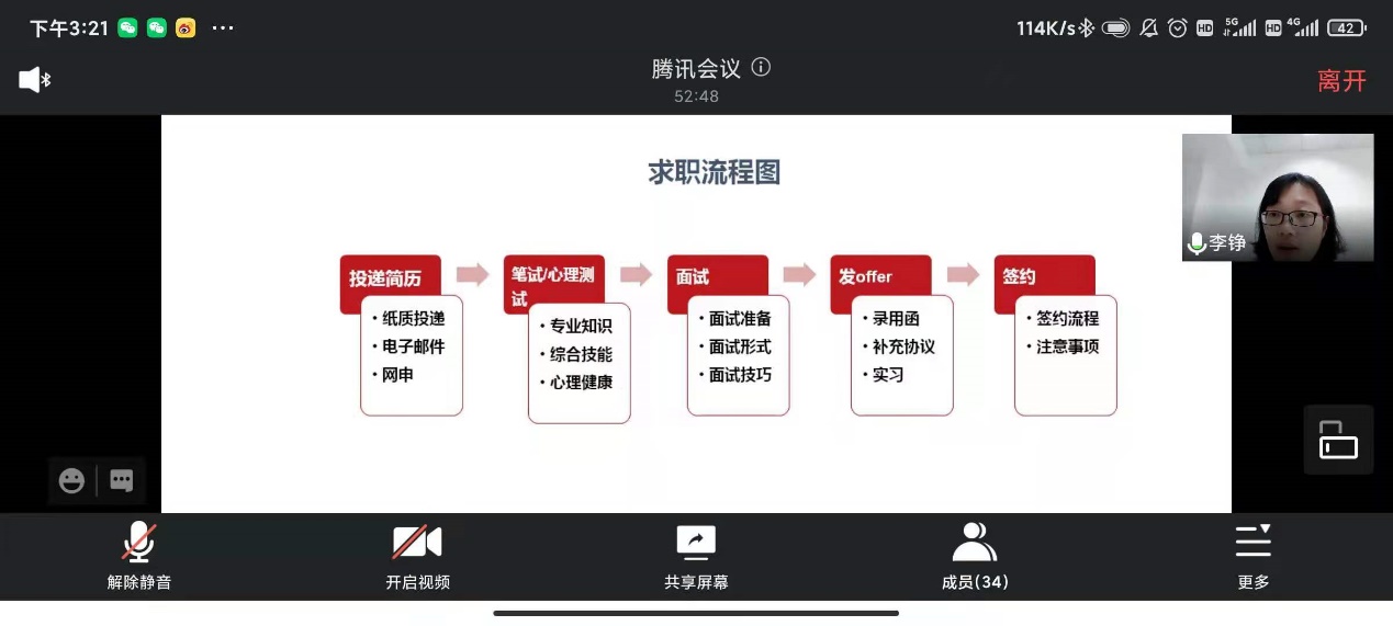 在明确求职目标后,李铮老师也提醒大家在求职的过程中要合理分配时间,列出求职计划表,标注时间节点,让每段求职收获最大化。对此,李铮老师特别向大家介绍了求职的时间节点和求职信息来源等重要信息。