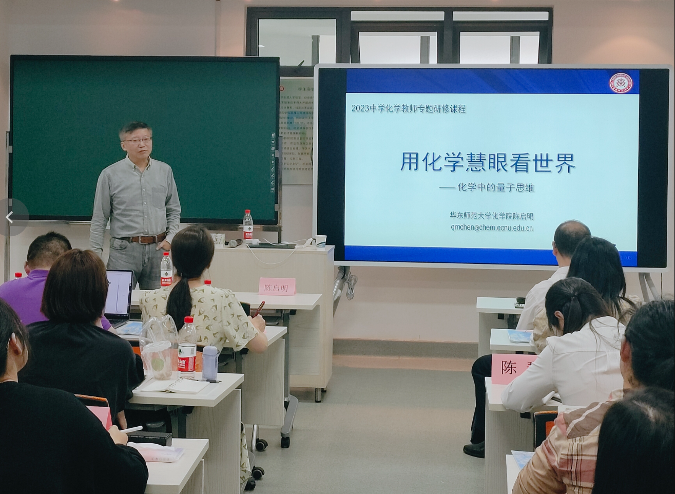 为贯彻落实全国教育大会精神,《中共中央国务院关于全面深化新时代教师队伍建设改革的意见》《中共上海市委上海市人民政府关于全面深化新时代教师队伍建设改革的实施意见》,进一步加强基础教育教师队伍建设, 将高校优质的学科和科研资源向基础教育教师辐射,促进基础教育教师的专业发展,上海市教师教育学院和华东师范大学合作共建上海市大中小学教师化学学科研修基地。2023年是二期共建的第二年,“中学化学教师专题研修班”于11月3日至5日在我校闵行校区开班。此次培训面向全市中学化学教师,40