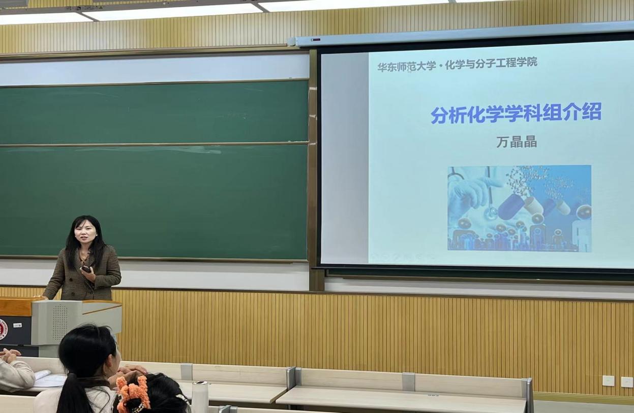 2023年12月6日下午,化学与分子工程学院“走进学科组”系列讲座之“无机化学学科组介绍”和“分析化学学科组介绍”在华师大闵行校区四教111教室顺利举办。此次讲座由分管本科教学的副院长王媛媛教授主持,“无机化学学科组介绍”、“分析化学学科组介绍”则分别由无机化学学科组长崔晓燕教授、分析化学学科组长万晶晶教授主讲。