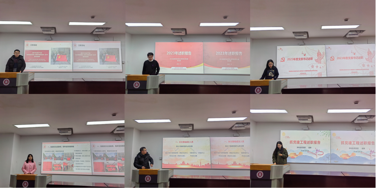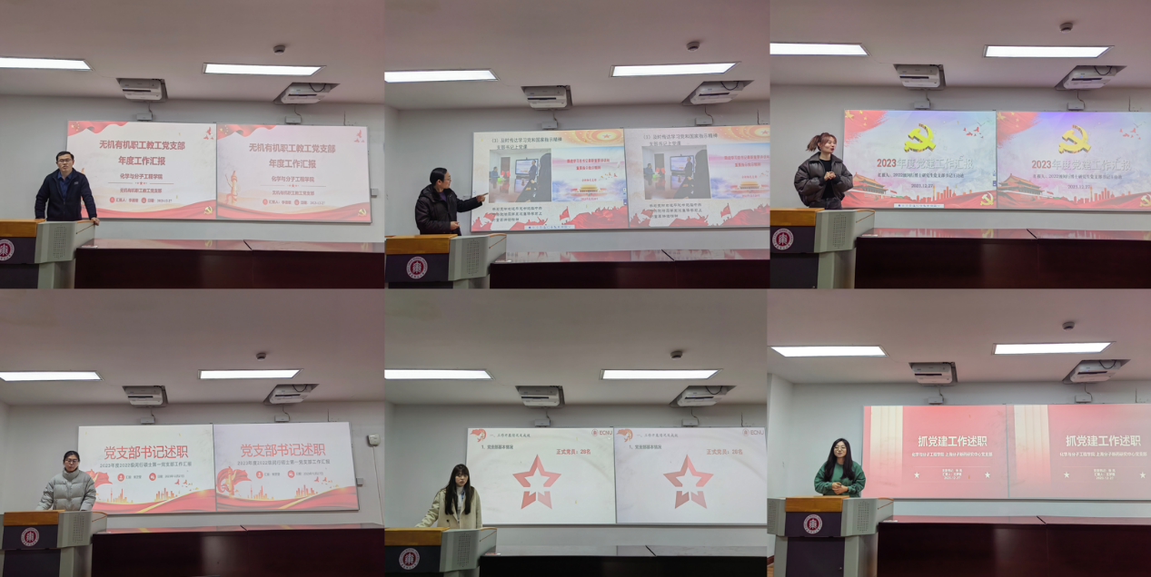 上海分子新药研究中心党支部宣传委员王梦雅、分析物化海水党支部书记马士禹、高分子实验中心党支部书记黄琨、无机有机职工党支部书记李德增、本科生党支部书记史琳,2021级普陀校区博士研究生党支部书记罗娟娟、2021级闵行校区博士研究生党支部书记朱韵、2022级普陀校区博士研究生党支部书记高志文、2022级闵行校区博士研究生党支部书记王诗迪、2021级普陀校区硕士研究生党支部书记张见闻、2021级闵行校区硕士研究生党支部书记王伟琛、2022级普陀校区硕士研究生党支部书记刘雅妮、2022级闵行校区硕士研究生第一党支部书记樊芝莹、2022级闵行校区硕士研究生第二党支部书记贺栖桐进行现场述职,十四位师生党支部书记围绕《华东师范大学党支部工作细则(试行)》要求,聚焦基层党支部“七个有力”建设标准,对2023年度支部书记履职情况进行了汇报,大家重点介绍了支部工作特色,查摆了存在的问题并在分析问题的基础上提出了后续工作目标和思路。