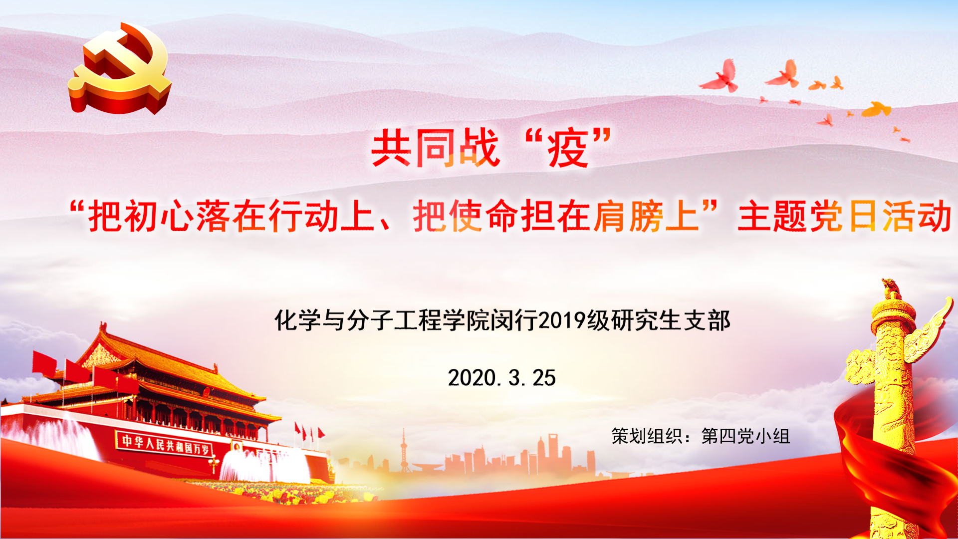 化学与分子工程学院各党支部在3月份认真进行了一次以“把初心落在行动上、把使命担在肩膀上”为主题的党日活动。