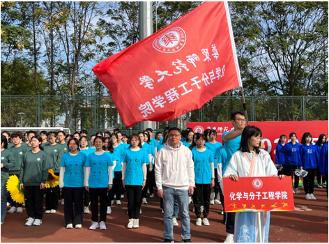 2022年10月25日,华东师范大学运动会在两校区进行。运动会开幕式上,化学与分子工程学院的同学在院党委书记鲜跃仲老师的带领下走向主席台。随后,参与入场式的化院同学排成一列,表演第九套广播操。在本次运动会中,化学院的健儿们踊跃参加各项赛事,运动员们在赛前做足了充分准备,在比赛中他们敢为人先、一往无前,取得了优异成绩。