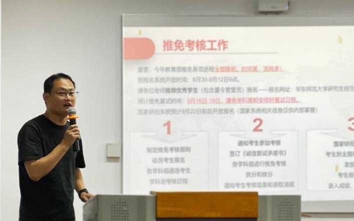 张中海副院长总结了研究生推免考核工作,感谢全体教职工在实验室安全工作中的协同配合,并部署新学期实验室安全重点任务。