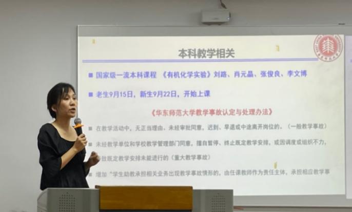 学院班子成员分别通报了分管重点工作。万晶晶副院长通报了《有机化学实验》荣获国家级一流本科课程,明确新学期上课时间,并领学《华东师范大学教学事故认定与处理办法》。