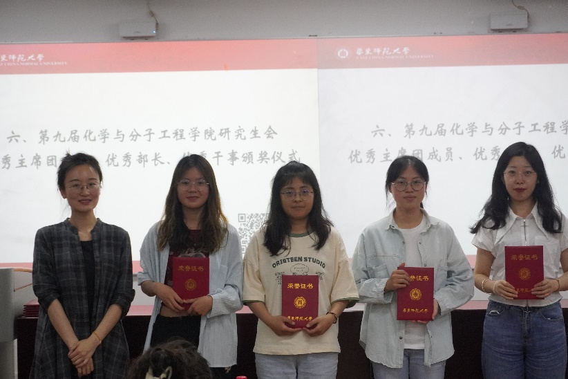 化院第九届研会所取得的成绩,离不开全体成员过去一年的辛勤付出。老师们为主席团成员及部长颁发了聘书,为优秀主席团成员、优秀部长和优秀干事颁发的荣誉证书。每一份红彤彤的证书,都满怀着老师们对研会成员工作的肯定与赞扬。