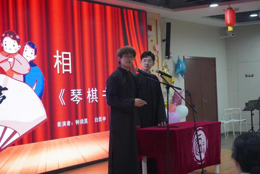 第二轮节目中,李梦菡首先为大家带来了独具动感和时代气息的舞蹈——Mic Drop,燃起了毕业生们的青春激情;钟琰昊、白昊申的相声《琴棋书画》为大家带来满场的欢乐与笑声,在相声结尾,他们用巧妙的段子也向毕业生们送出了美好的祝福;袁思珩的乐器演奏《女儿情》悠扬婉转,让观众们徜徉在美妙的乐声中。
