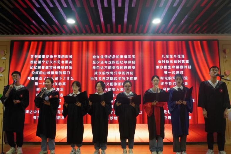 在晚会的第三轮节目中,杨昕熠表演的魔术《预知未来逐梦,透视似锦前程》赢得了现场的声声惊叹与欢呼,袁晔独唱的昆曲《孽海记·思凡·风吹荷叶煞》让大家眼前一亮、耳目一新。最后,晚会在“化音·灵犀”合唱团的《凤凰花开的路口》中落幕,毕业生们在袅袅歌声中回味着属于自己的师大故事,期待着与师长好友在下一个路口再会。