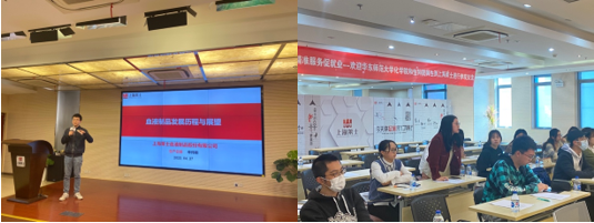 厂区参观结束后,师生一行人重新回到报告厅进行学习总结与职业发展互动,由校园招聘与校企合作经理任瑢主持。任老师从问卷测评切入,让参会学生评估自己的就业准备度,详细介绍了公司多通道、全方位、快速发展的职业发展路径和全方面福利待遇等,公司注重员工的个人职业生涯发展与企业的发展壮大同步,鼓励并积极提供培训开发和技术交流机会,在专业技术和综合能力各方面给人才一个广阔的发展天地。