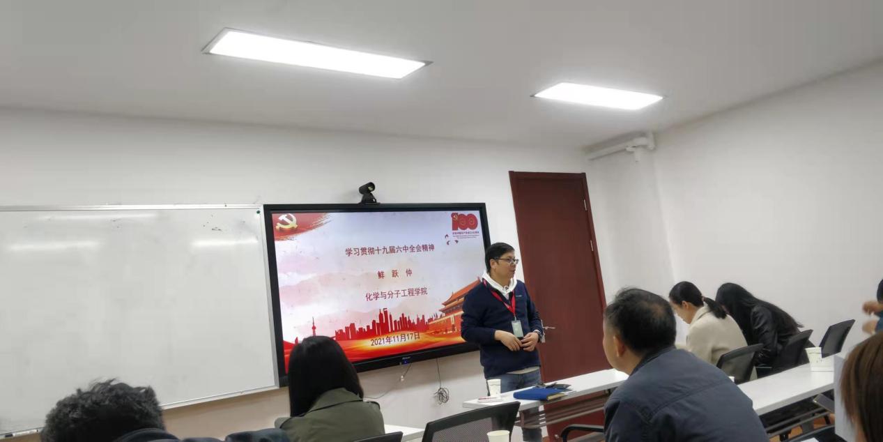 为深入学习贯彻党的十九届六中全会精神及进一步深化落实党支部书记例会制度, 2021年11月17日上午化学与分子工程学院党委中心组学习扩大会暨党支部书记例会在闵行校区化学楼126教室举行。院党委委员、党支部书记、辅导员、专职组织员参加了会议。会议由党委书记鲜跃仲主持。