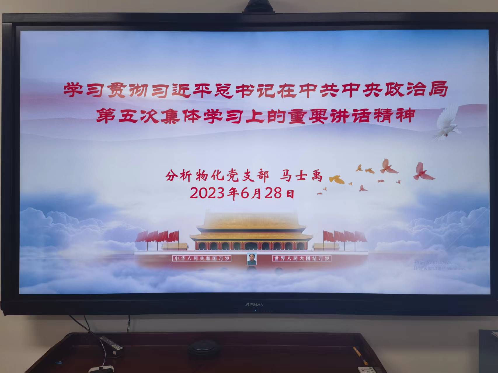 6月28日下午,化学与分子工程学院分析物化党支部开展了“学习贯彻习近平总书记在中共中央政治局第五次集体学习上的重要讲话精神”的主题党日活动。