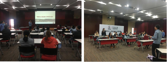 研究院人力资源部霍老师首先向化院师生介绍了公司的整体情况,重点讲解了公司的研究领域和研发队伍概况。霍老师表示,上海中石化研究院对青年学生来说是一个充满机遇和挑战的舞台,希望在座的青年学生毕业后能选择来此建功立业。随后,霍老师也详细介绍了公司的“一院三址五分院”,介绍了中石化的科研基地和研发平台,向师生们展示了各类先进科研装备,展现出研究院在科研方面的实力。此外,霍老师也向化院师生介绍了公司已取得的丰富的科研成果和极具特色的每日大赛,鼓励同学们在埋头科研的同时,也要劳逸结合,丰富自己的业余生活。见面会最后,霍老师还一一解答了同学们在求职、择业方面的疑问。