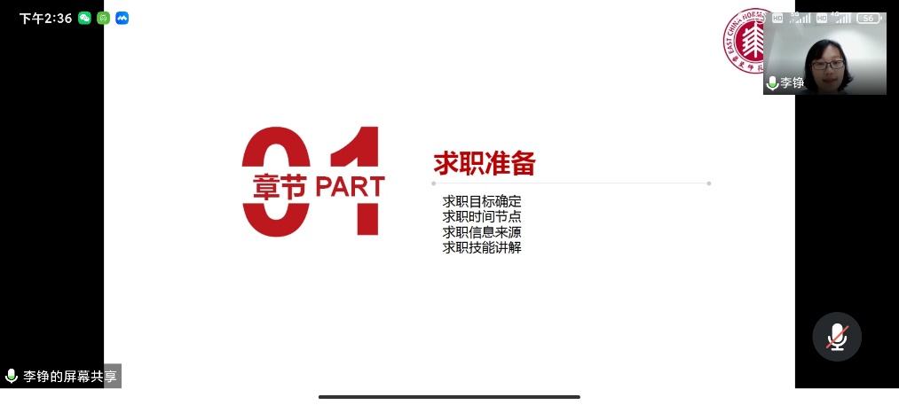 5月19日14:30,化学与分子工程学院于线上开展了一场求职指导与就业政策解读讲座,讲座由校学生发展中心生涯指导主管李铮老师主讲,院毕业班辅导员冯琪老师主持,两校区同学共同聆听。
