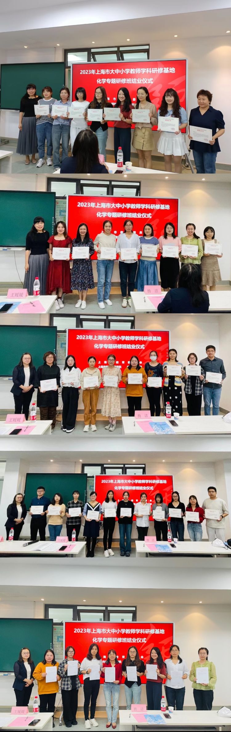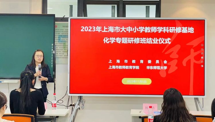 千里之行始于足下,学员们将培训中所学所思所行与课堂教学有机融合,基于学科研修中获得教学上创新的灵感,达成知行合一的境界。上海市教师教育学院领导杨洁主任和学院王媛媛副院长在班级结业仪式上向全体培训教师学员颁发研修证书,并为其中的八位老师颁发“优秀学员”证明。杨洁主任在致辞中希望学员们把这次浸润式的培训中收获转化为教育教学科研成果,培训暂时结束并画上了一个句号,在学思行中不断强化化学学科研修赋能!