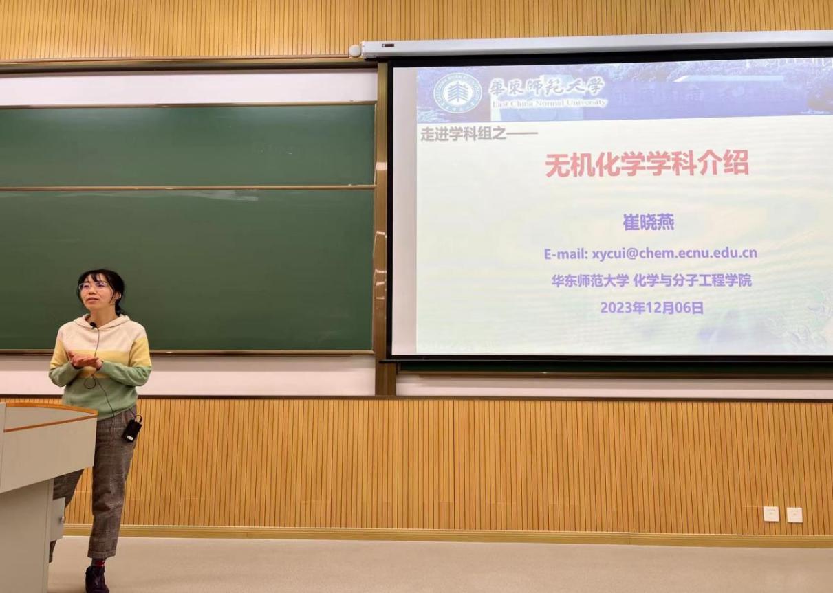 2023年12月6日下午,化学与分子工程学院“走进学科组”系列讲座之“无机化学学科组介绍”和“分析化学学科组介绍”在华师大闵行校区四教111教室顺利举办。此次讲座由分管本科教学的副院长王媛媛教授主持,“无机化学学科组介绍”、“分析化学学科组介绍”则分别由无机化学学科组长崔晓燕教授、分析化学学科组长万晶晶教授主讲。