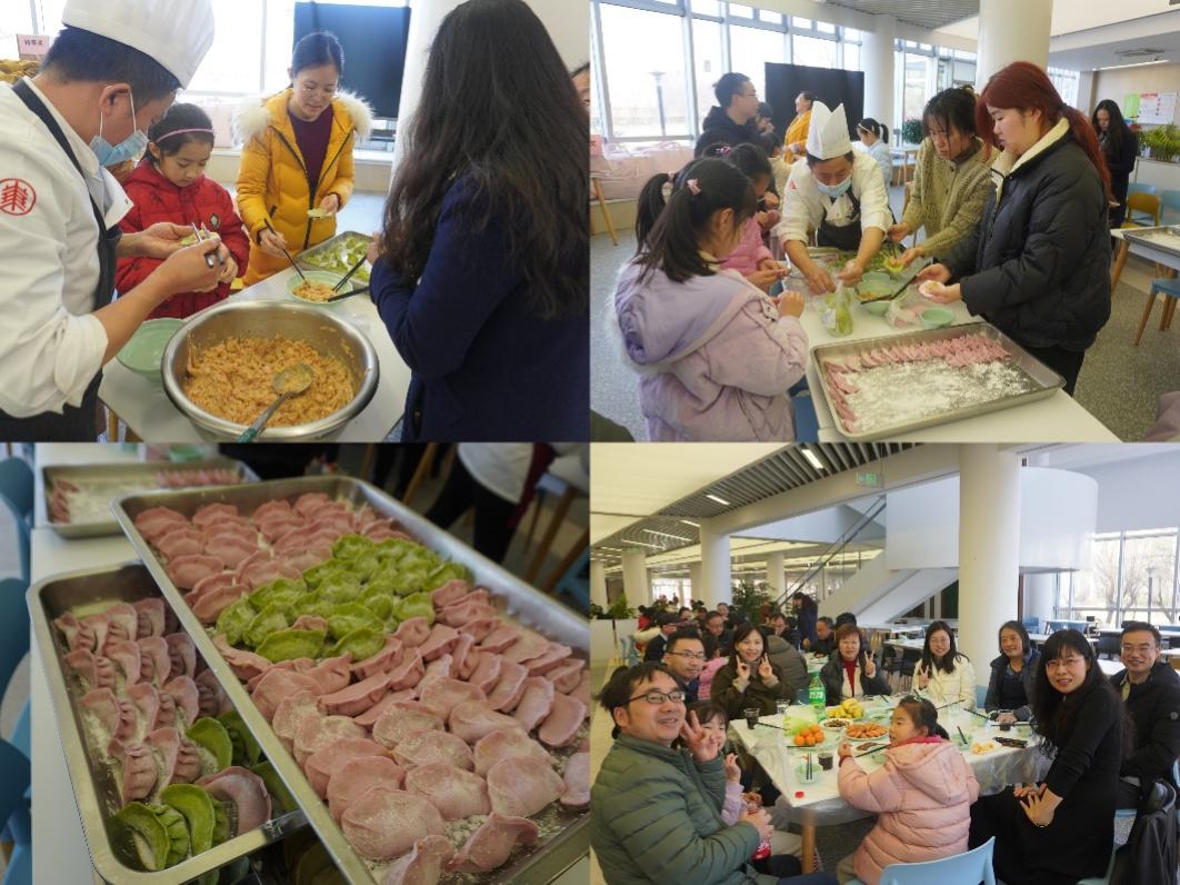 夏雨厅的厨师们早早就为活动准备了需要的材料,老师们大显身手,围坐在一起拌馅、包饺子,尽管饺子有大有小,形状各异,这体现了各个地方的不同风俗和饺子样式。大家围绕学习、生活、工作等话题,大家不时交谈着,处处洋溢着“家”的味道。在欢声笑语中,一盘盘热气腾腾的饺子端上了桌子,大家吃着自己亲手包的饺子,与同事们分享着快乐,喜悦之情溢于言表。小小的饺子,包进去的是情谊,吃下去的是温馨,希望老师们能够好好享受每一餐,爱工作同时也爱生活。