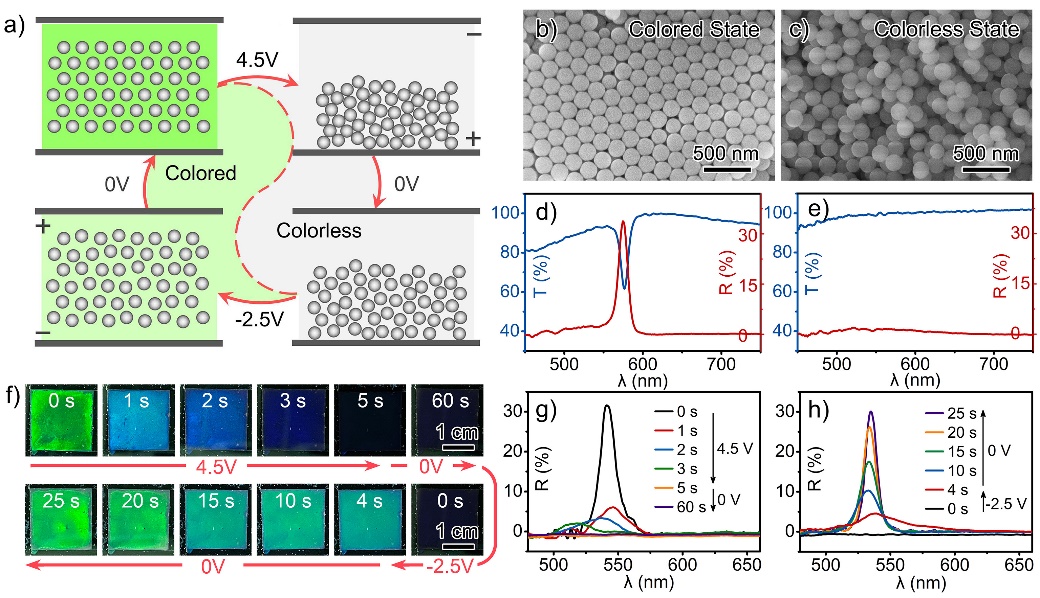 图2具有双稳态及可逆切换特性的电响应光子晶体。图片来源:Nat. Commun.