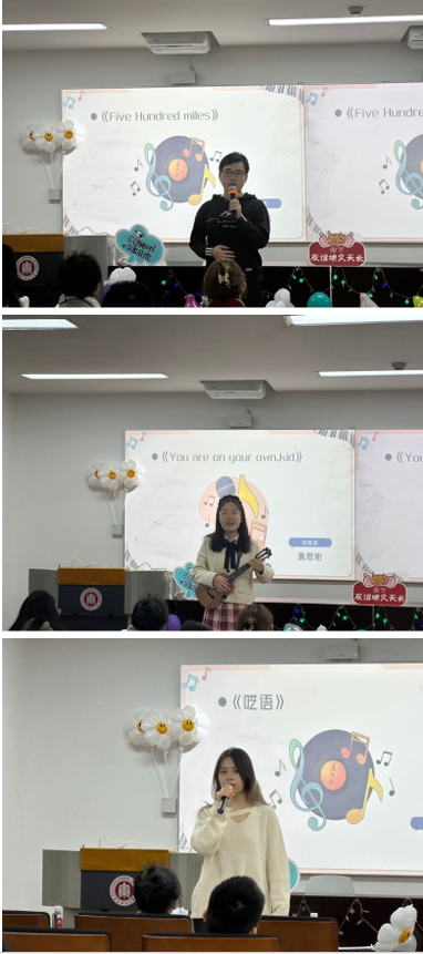 袁思珩同学用边弹边唱的形式演奏了歌曲《You are on my own, kid》。这是一首关于爱情与自身成长的歌曲,也是一首与过去的自己和解的歌。它不完全在描写情感,也在描写个人内心世界的成长。