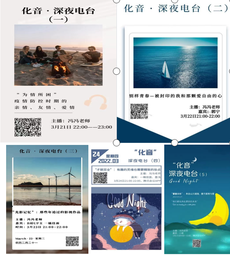 停学,隔空不隔爱”,为丰富同学们在防疫封控期间的宿舍生活,化学与分子工程学院“化音”电台策划开展了“‘疫’散有终,情牵无穷”深夜电台栏目,活动面向化学院全体学生,由化学院辅导员冯琪老师担任主播。活动分为“深夜树洞”“主题畅聊”“晚安音乐”三个板块。