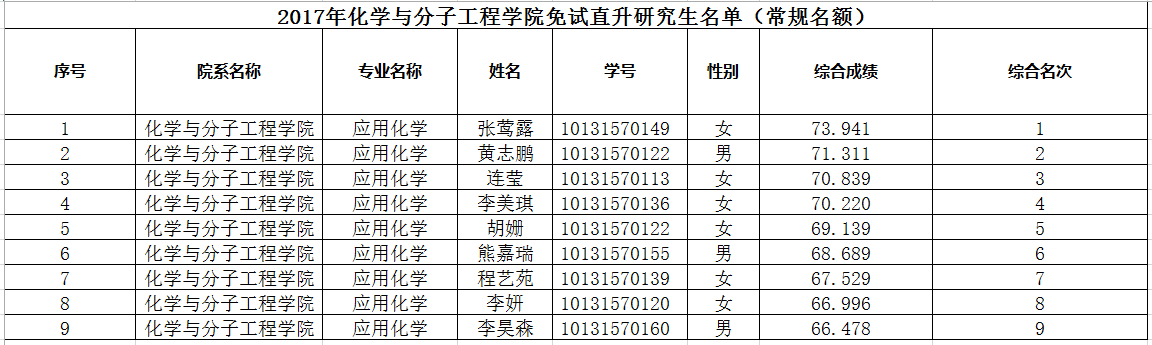 2017年每日大赛 免试直升研究生名单(常规名额)