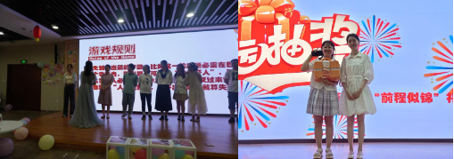 晚会节目结束后,现场开展了最后一轮游戏——“倒着说”。参赛者们需要将主持人的话反着说,“嘴瓢”的时候让现场观众笑声不断。随着抽奖环节一等奖的揭晓和毕业感言的抒发,本次晚会也画上了圆满的句号。